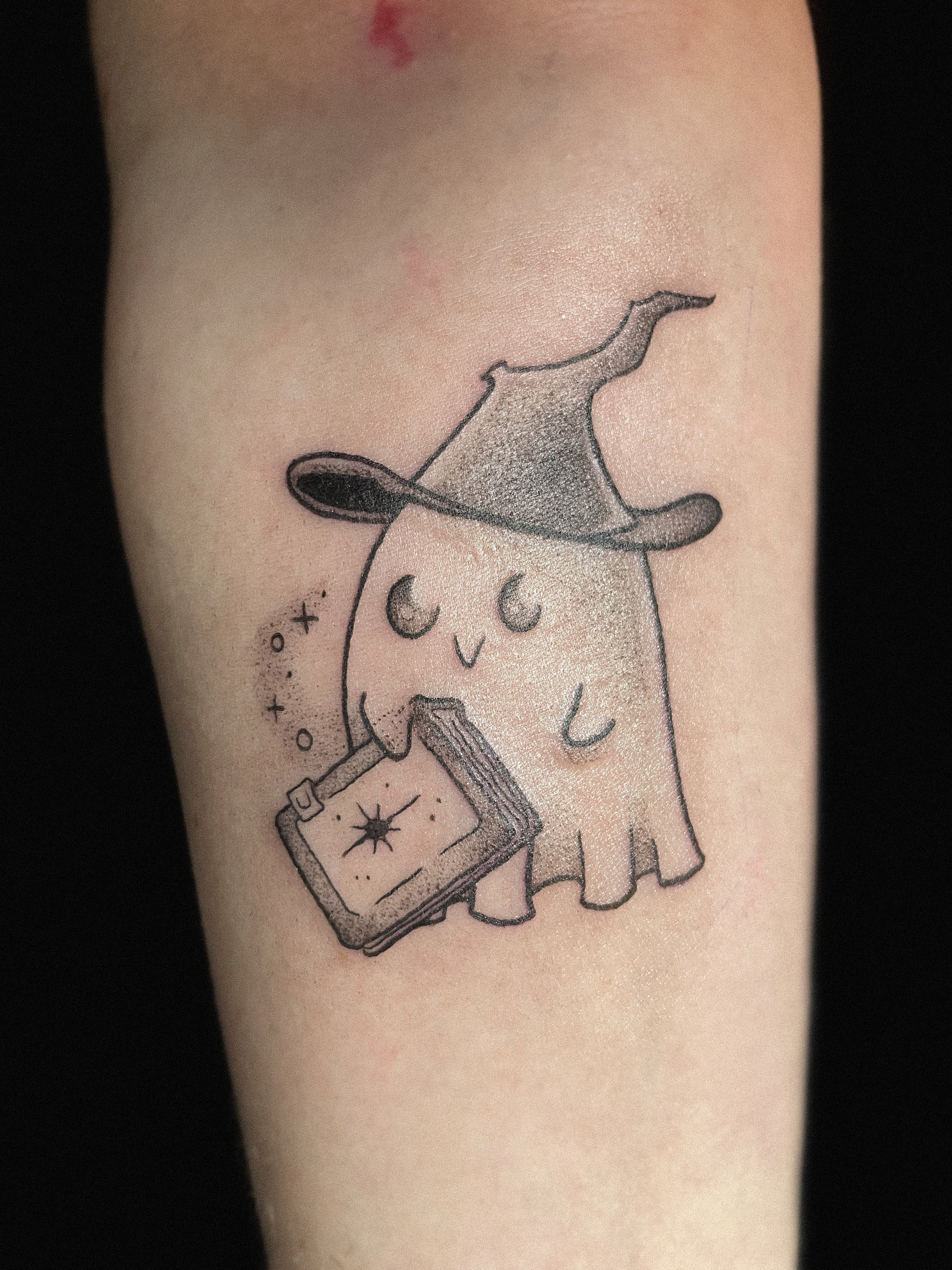 Emma specialise dans le tatouage blackwork et illustratif. Elle est inspirée par les animaux, les creatures mignonnes et maléfiques et les motifs de tatouage traditionnel Americain reinterprété dans une thématique witchy.