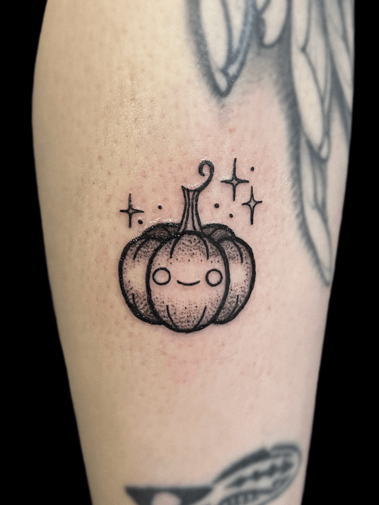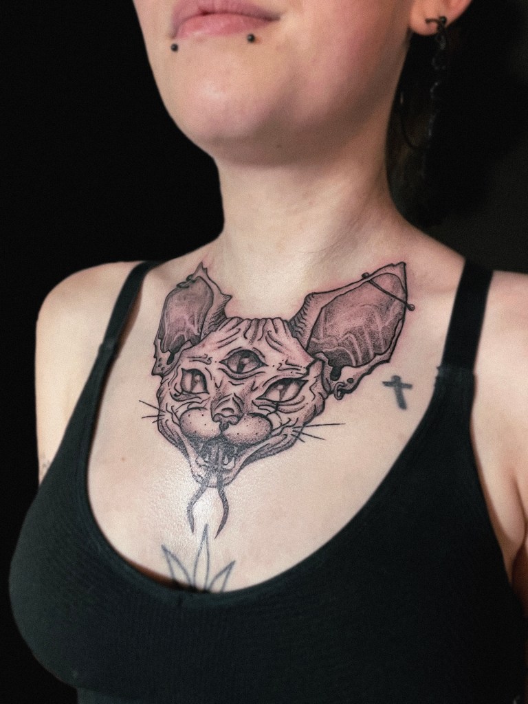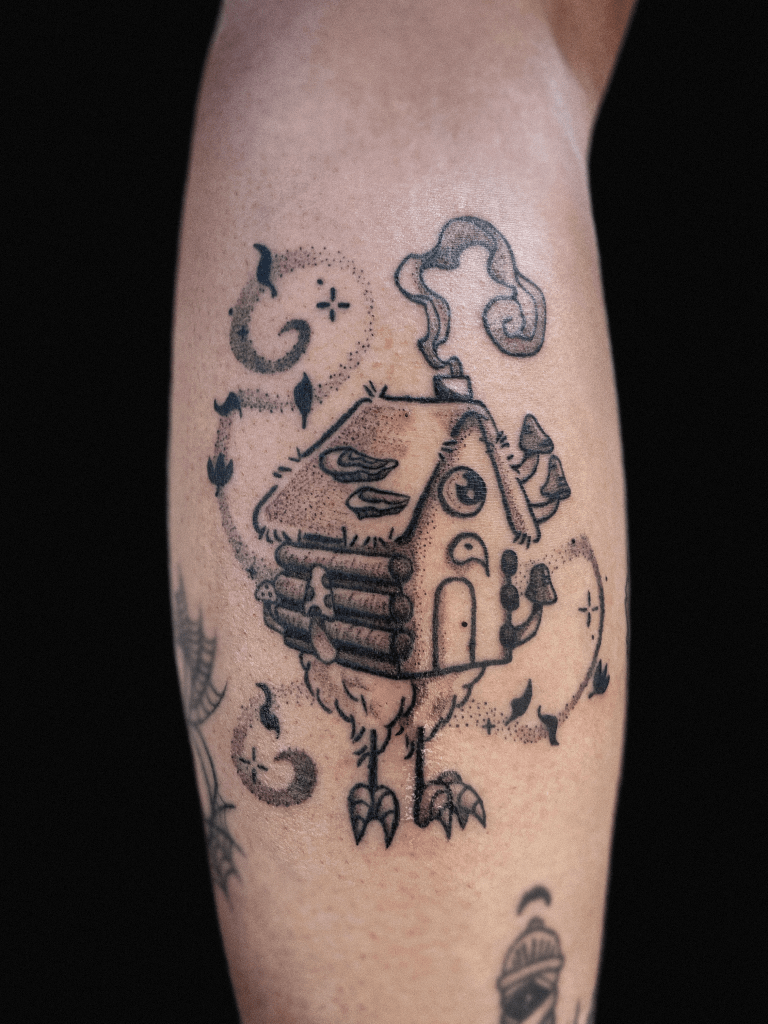 Emma specialise dans le tatouage blackwork et illustratif. Elle est inspirée par les animaux, les creatures mignonnes et maléfiques et les motifs de tatouage traditionnel Americain reinterprété dans une thématique witchy.